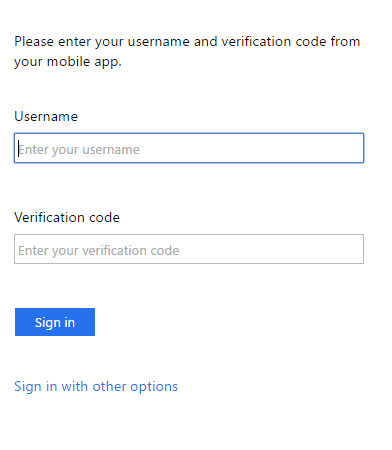 You enter your UPN and press tab to enter the corresponding code from the Azure Authenticator app. But you are not given a chance to enter the code and you get the standard error page with a correlation ID etc.